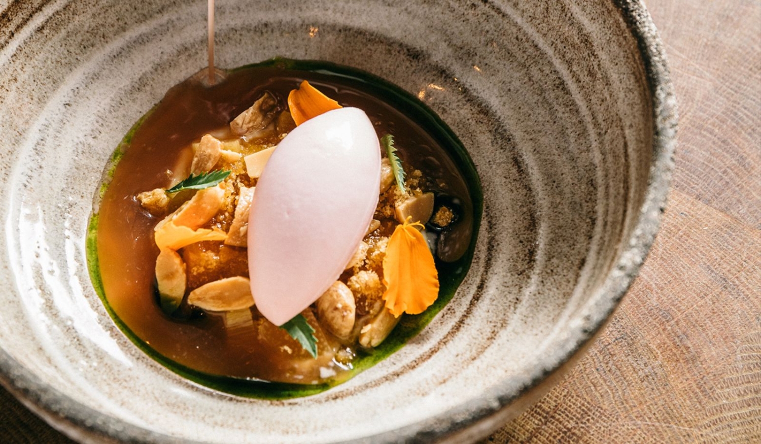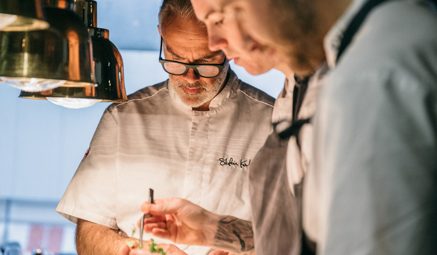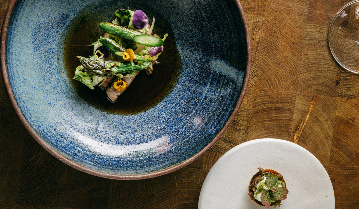 Rätter och menyer med råvaror från säsong och vårt svenska matarv. Funderar du på något kan du fråga kockarna direkt, det finns inga väggar kring köket. Maten lagas i princip mitt i den intima matsalen och ibland serverar kockarna själva stolt sin tallrik direkt till dig.
